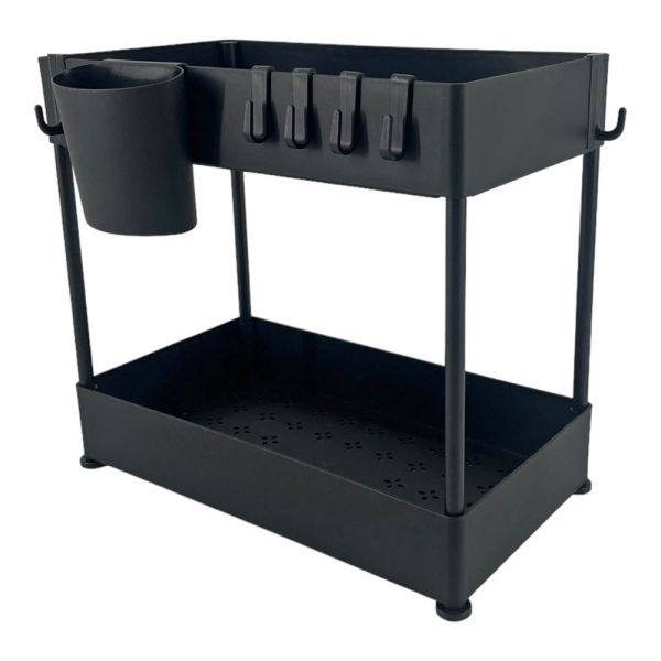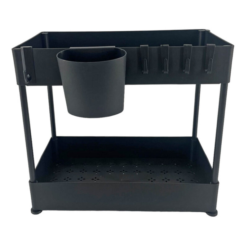 Ραφιέρα οργάνωσης για τον πάγκο της κουζίνας η οποία αποτελείται από δύο ράφια, κουταλοθήκη, δύο σταθερά άγκιστρα και τέσσερις μετακινουμένους γάντζους. Κατασκευασμένο από πλαστικό ιδιαίτερα ανθεκτικό.Ιδανική λύση για να έχετε μια κουζίνα τακτοποιημένη.